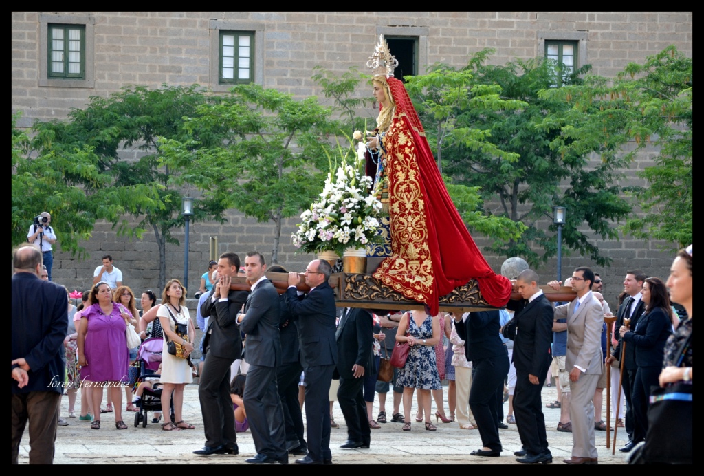 | Virgen de la Salud y Virgen de la Cabeza, de Alcalá de Henares, a los pies del Monte Abantos, en la lonja del Monasterio de San Lorenzo de El Escorial... ¡vaya tela! |